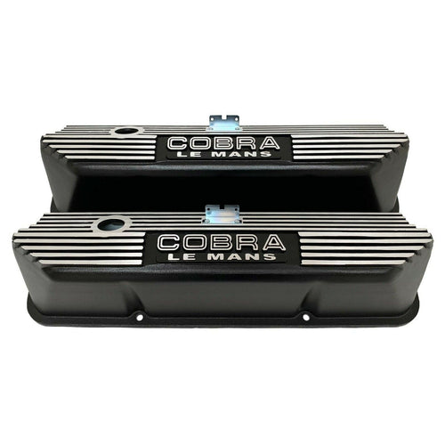 Ford COBRA LE MANS FE Tall Valve Covers - Die-Cast Logo - Black