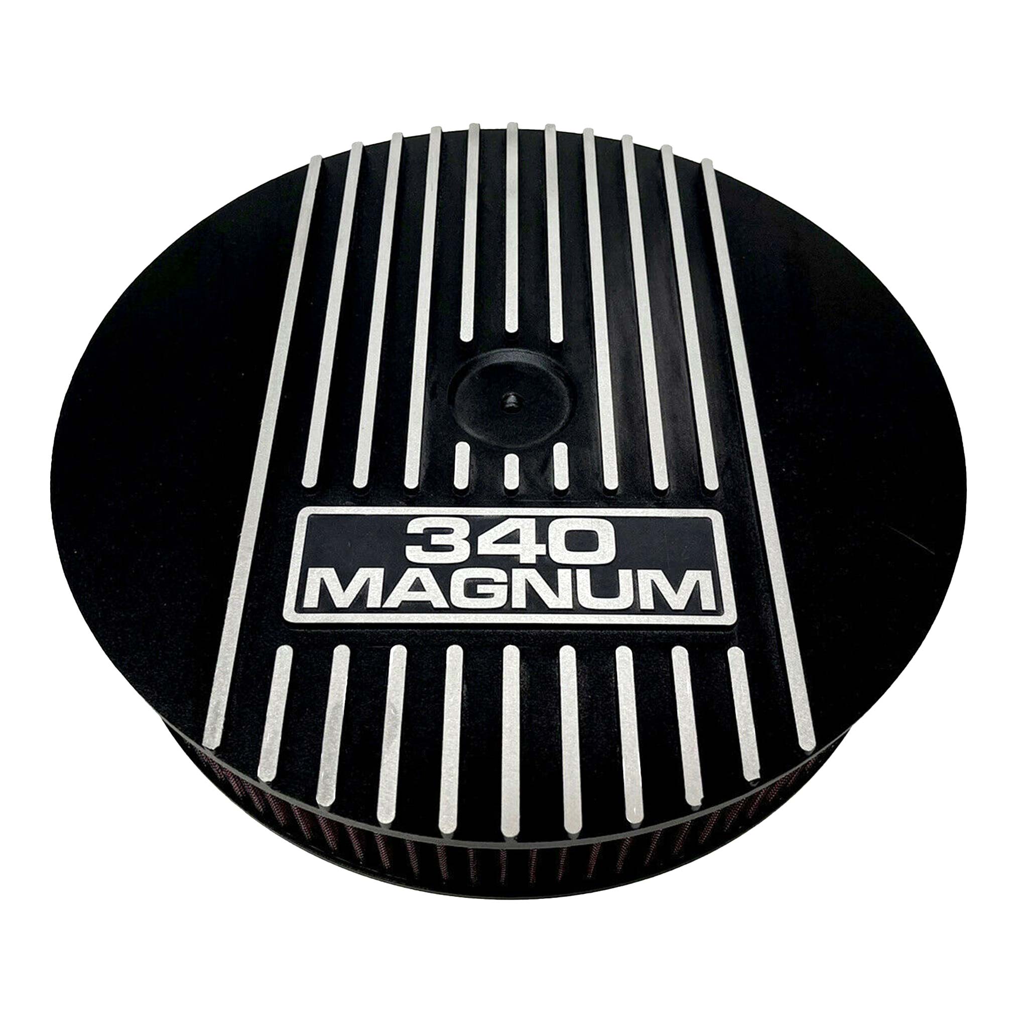 This 13" Mopar 340 Magnum round air cleaner kit features raised fins and a black powder coated finish. Ansen air lids are built from high-grade die-cast aluminum.