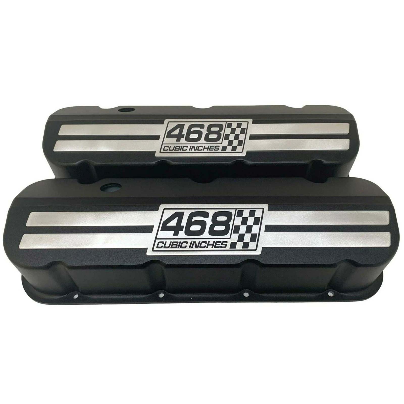 These Big Block Chevy 468 Cubic Inches valve covers feature an engraved raised billet top and a black powder coat finish. Our valve covers are built from high-grade die-cast aluminum.