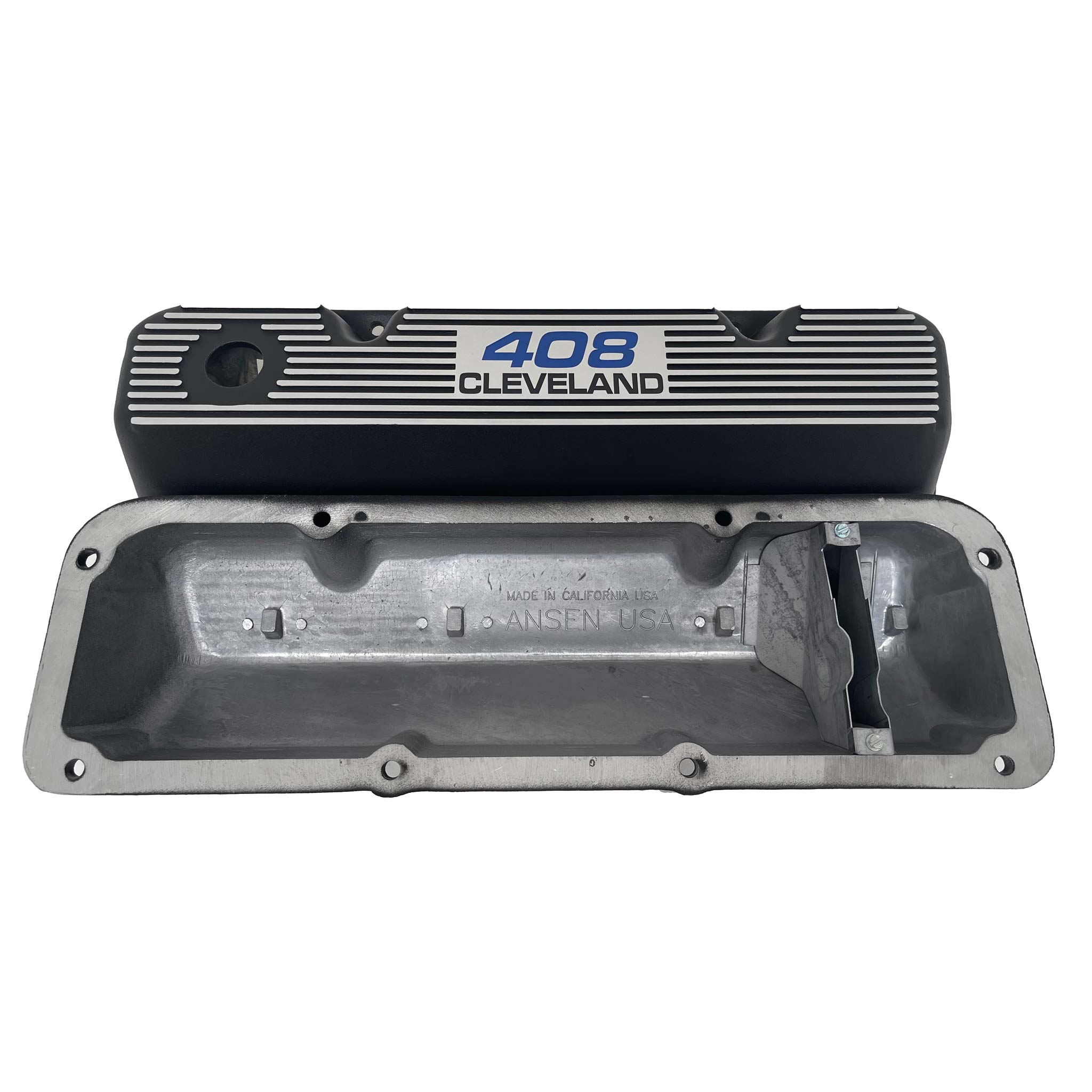 These Ford 408 Cleveland valve covers feature an engraved logo and a black powder coat finish. Ansen valve covers are built from high-grade die-cast aluminum. Please refer to measurements and specs below!