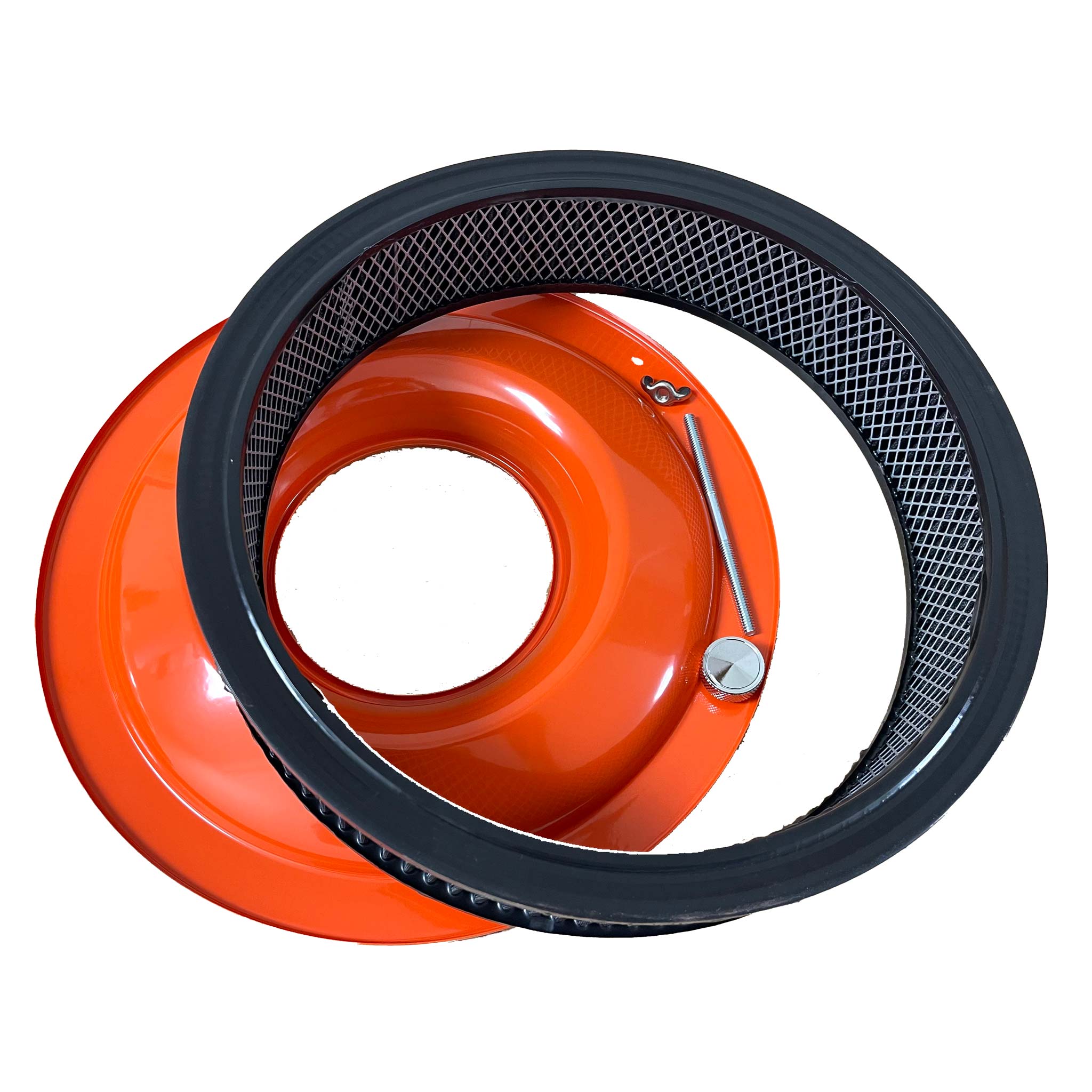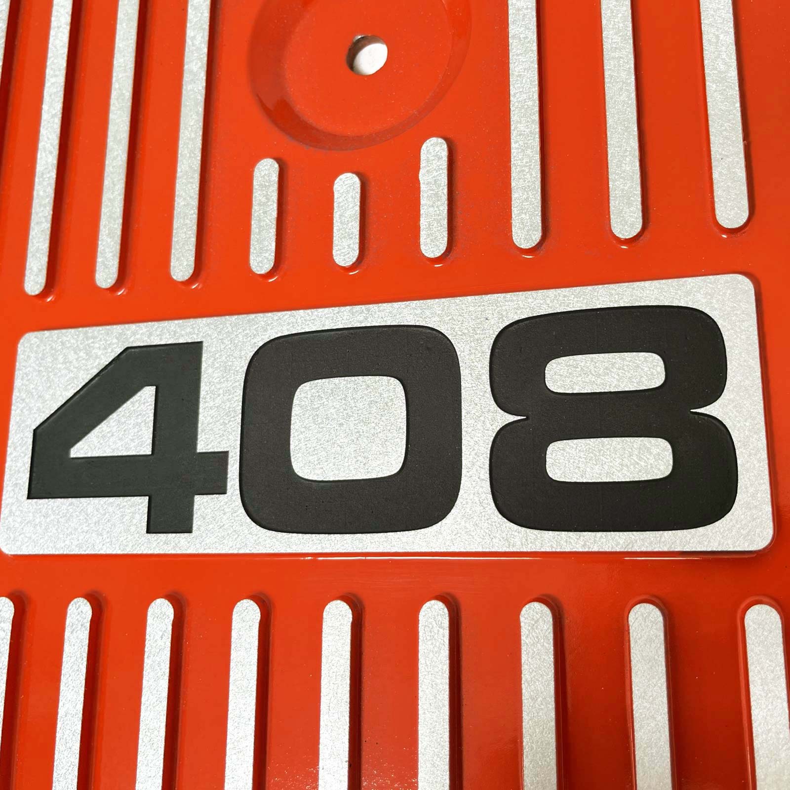 This Mopar or Ford 408 air cleaner kit features raised fins and an orange powder coat finish. Ansen air lids are built from high-grade die-cast aluminum.