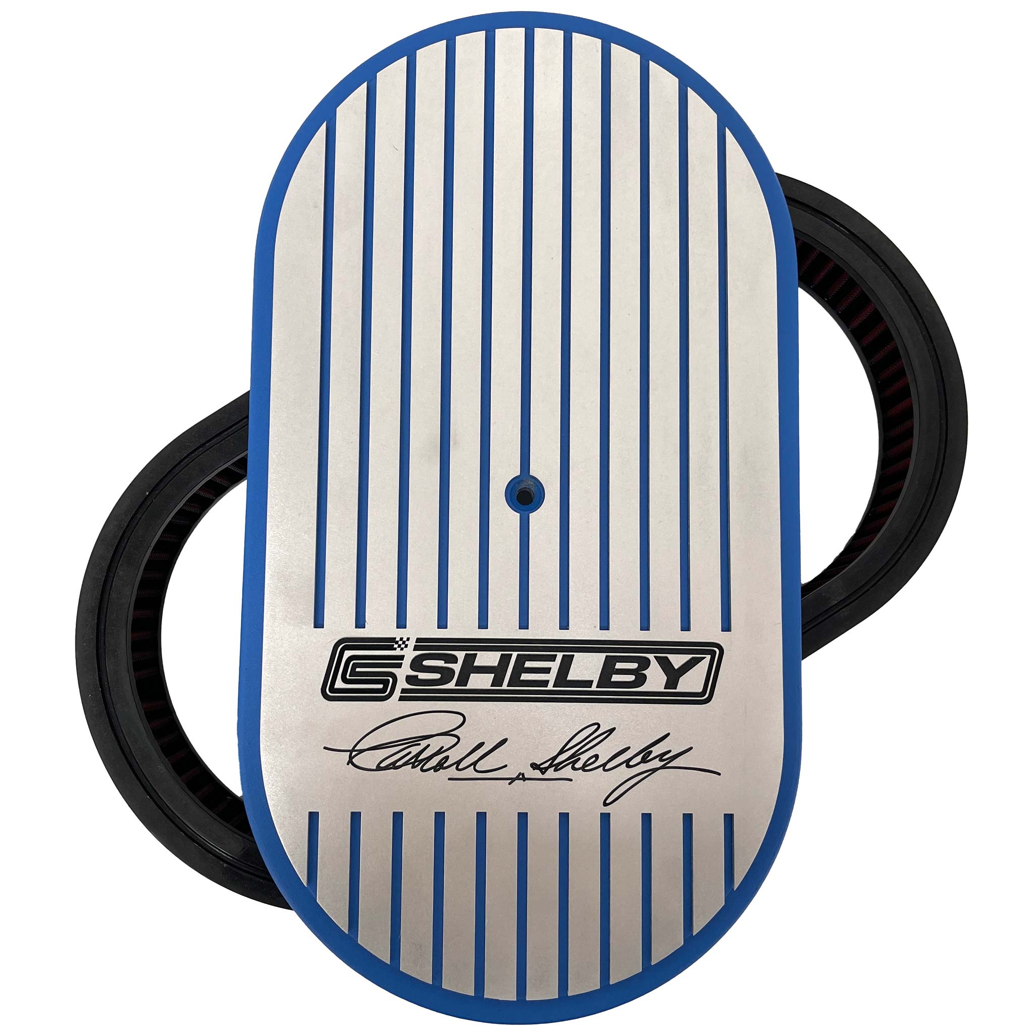 This 15" oval air cleaner kit features a raised, finned billet top and a blue powder coat finish. Ansen air lids are built from high-grade die-cast aluminum.