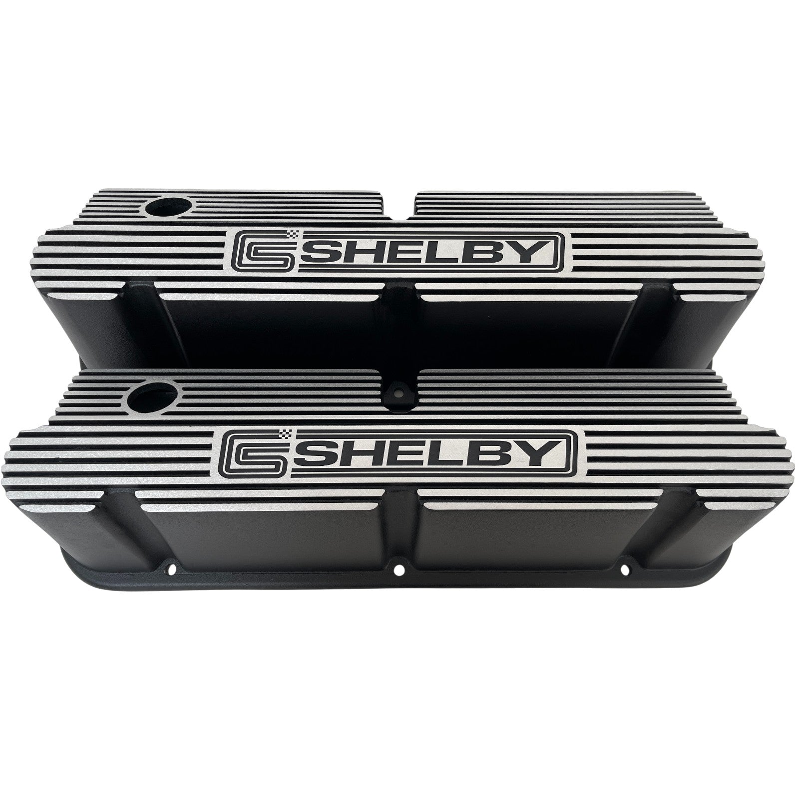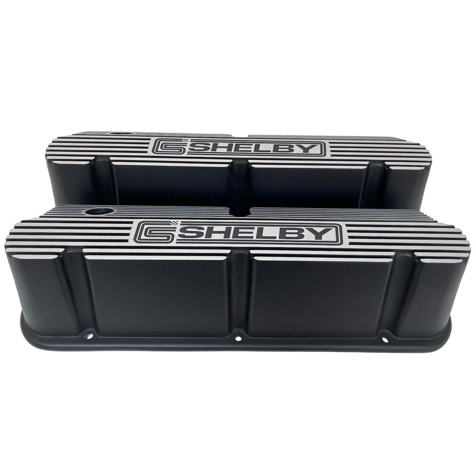These Ford 351 Windsor Pentroof style valve covers feature an engraved SHELBY logo and a black powder coat finish. Ansen valve covers are built from high-grade die-cast aluminum. Please refer to measurements and specs below!