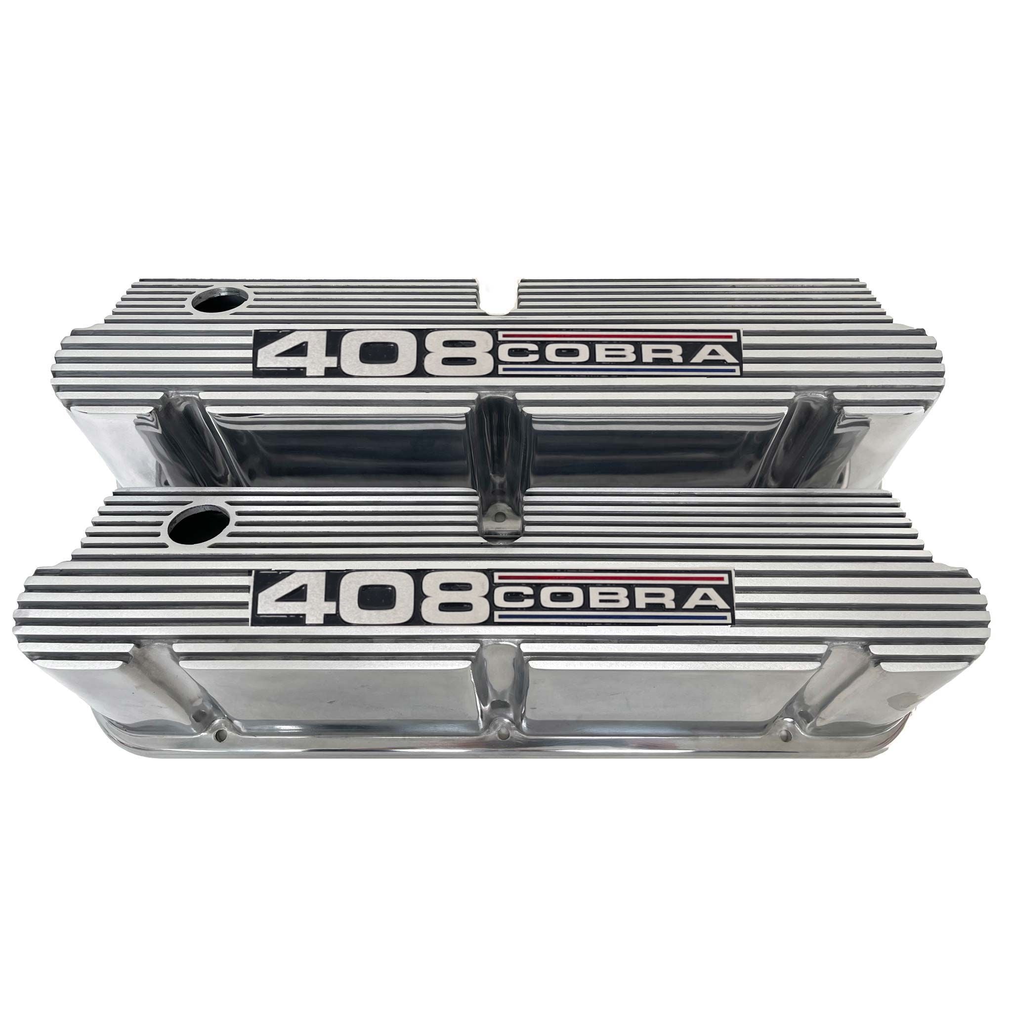 These Ford 351 Windsor Pentroof style valve covers feature an engraved 408 Cobra logo and a polished finish. Ansen valve covers are built from high-grade die-cast aluminum. Designed for the small block Ford engine block. Please refer to measurements and specs below!